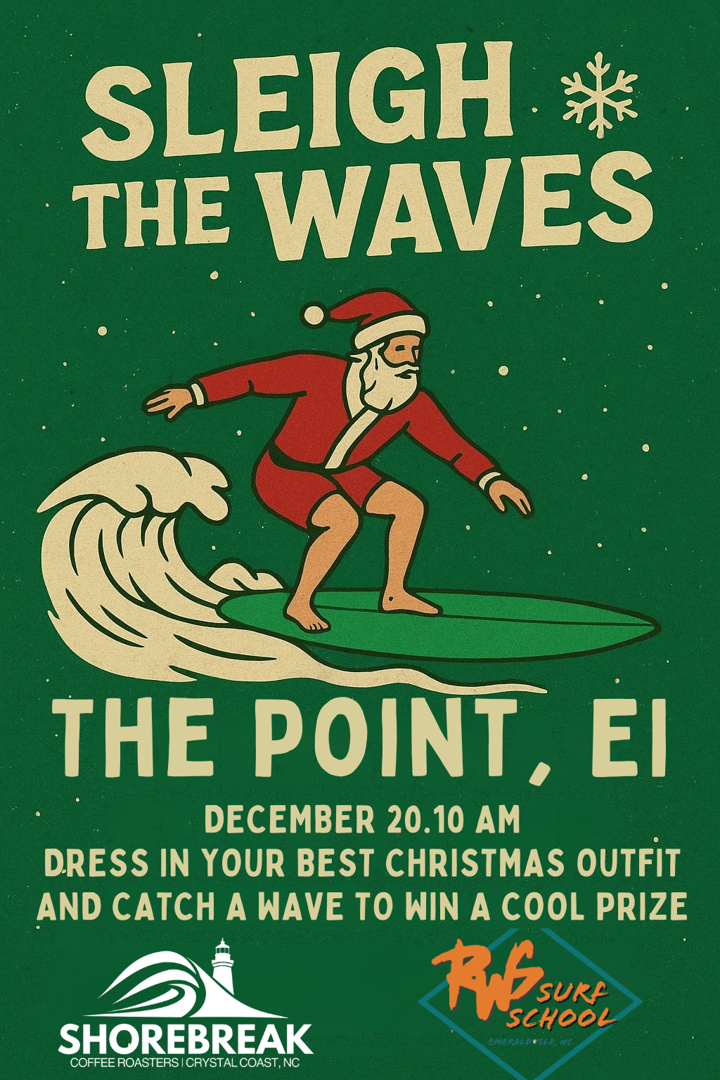 The holidays hit different when you’re near the ocean — and this year, we’re bringing that energy straight to the lineup. On December 20th from 10 AM to noon, RWS Surf School and Shorebreak Coffee is hosting Sleigh the Waves, a free community surf event built for pure fun, good vibes, and a little festive chaos in the water.